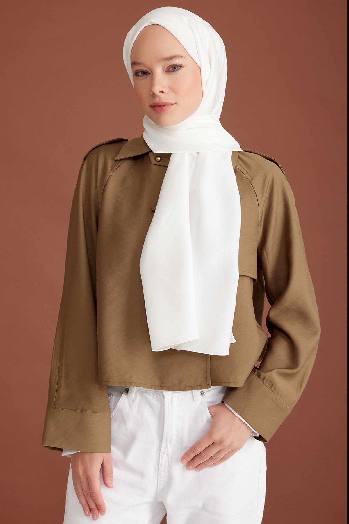 Kapsül dolaplara uyumuyla uzun süre değerini koruyan bir seçimdir. Beyaz paleti günlük stile sakin ve güçlü bir etki katar. Özenli düz tensel şal işlemesi görsel bütünlüğe ritim katar. Görünümünüze sakin bir zarafet ekleyen tamamlayıcı bir dokunuştur. Konfor ve zarafeti aynı potada toplayan bu şal, kaliteli kumaş ve özenli doku birlikteliğiyle öne çıkar.