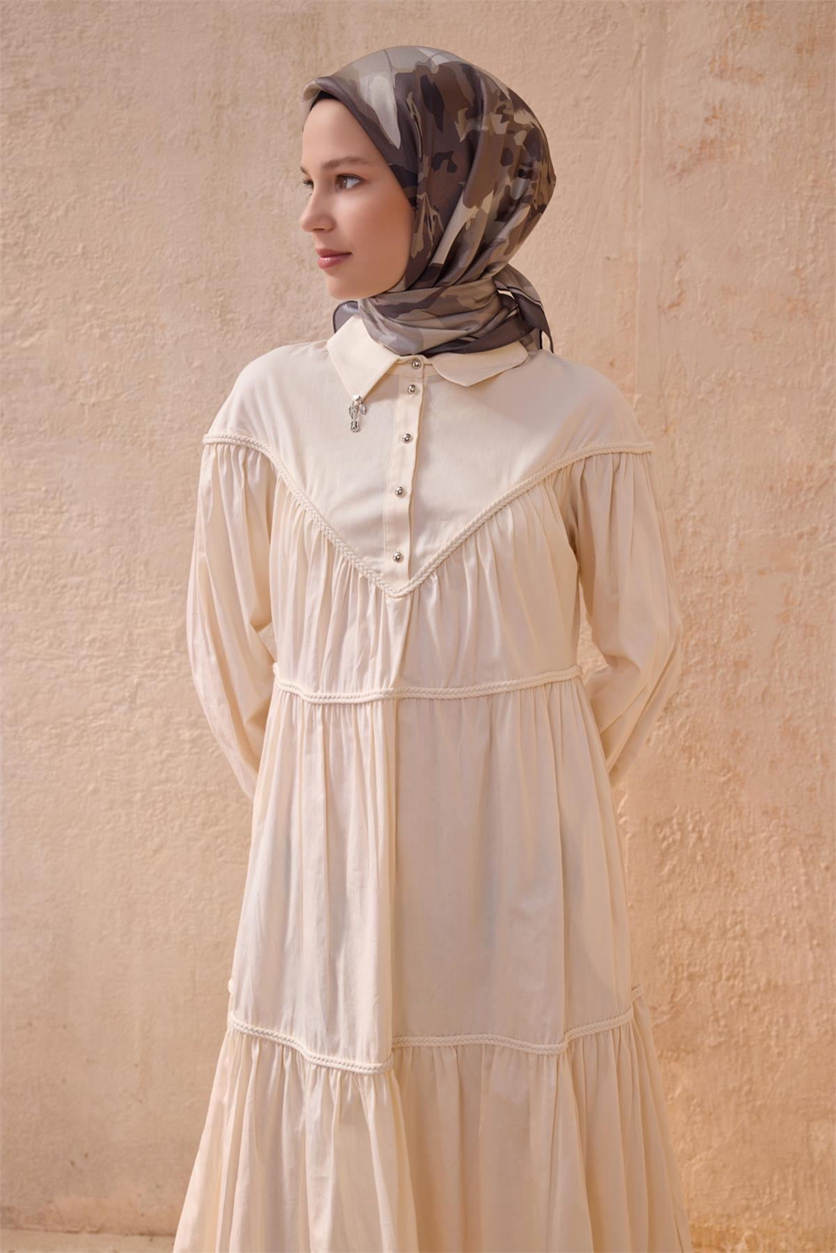 Seyahat ve hafta sonu planlarında hafifliğiyle öne çıkar. Naif desen dokunuşu parçanın seçkin duruşunu destekler. Eşarp tercih edenler için formunu koruyan dengeli bir alternatif oluşturur. Dengeli tutuşu ve pürüzsüz dokusuyla bu eşarp, kaliteli kumaş ve özenli doku uyumunu zarifçe yansıtır. Kumaş yapısını korumak için yoğun sürtünmeden kaçınılmalıdır.
