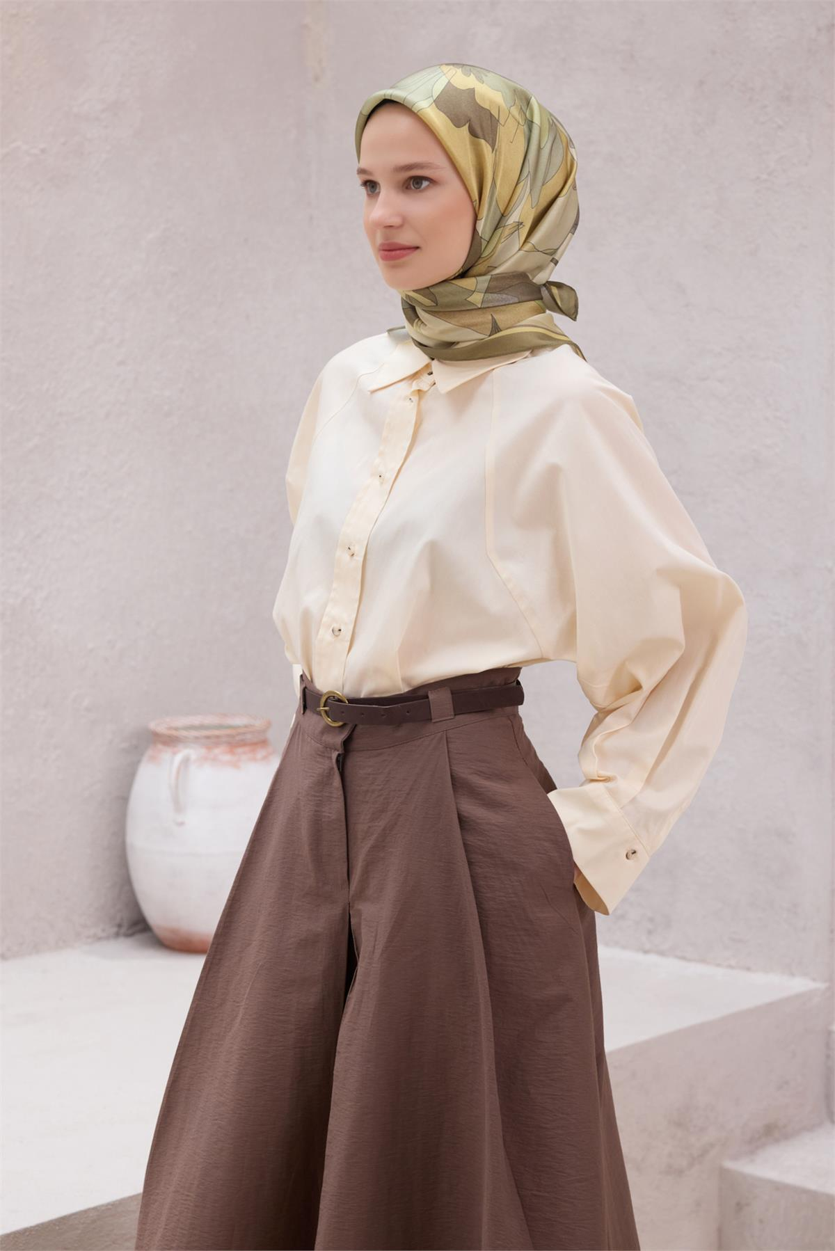 Kaliteli kumaş temelli yapısı ve özenli doku karakteriyle bu eşarp, gün boyu düzenli bir duruş sunar. Naif desen vurgusu, sade çizgiye incelikli bir dinamizm ekler. Mevsim geçişlerinde katmanlı kombinlere pratik bir destek sağlar. Dolabınızda uzun süre keyifle kullanacağınız güvenilir bir tercihtir. Nötr tonlar gamı, ofis ve şehir stiline kolayca entegre olur. Kapsül dolaplara uyumuyla uzun süre değerini koruyan bir seçimdir.