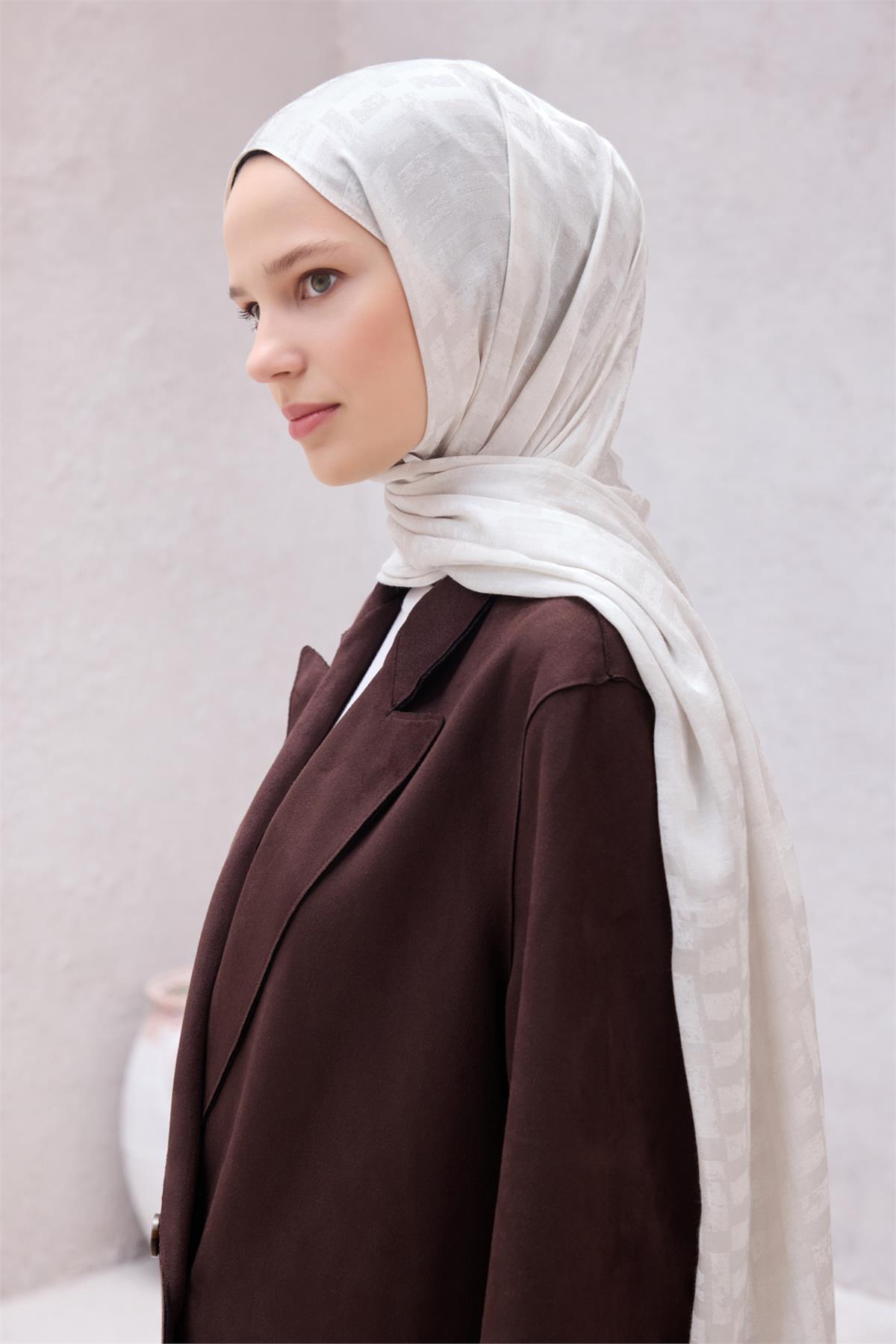 Naif desen detayları modele karakter ve akış kazandırır. Nötr tonlar tonları farklı kombinlerle kusursuz bir uyum yakalar. Kapsül dolaplara uyumuyla uzun süre değerini koruyan bir seçimdir. Gün boyu konfor arayanlar için hafif ve düzenli bir duruş sergiler. Günlük şehir stilinden özel davetlere uzanan kombinlerde eşarp olarak rahatça değerlendirilebilir.