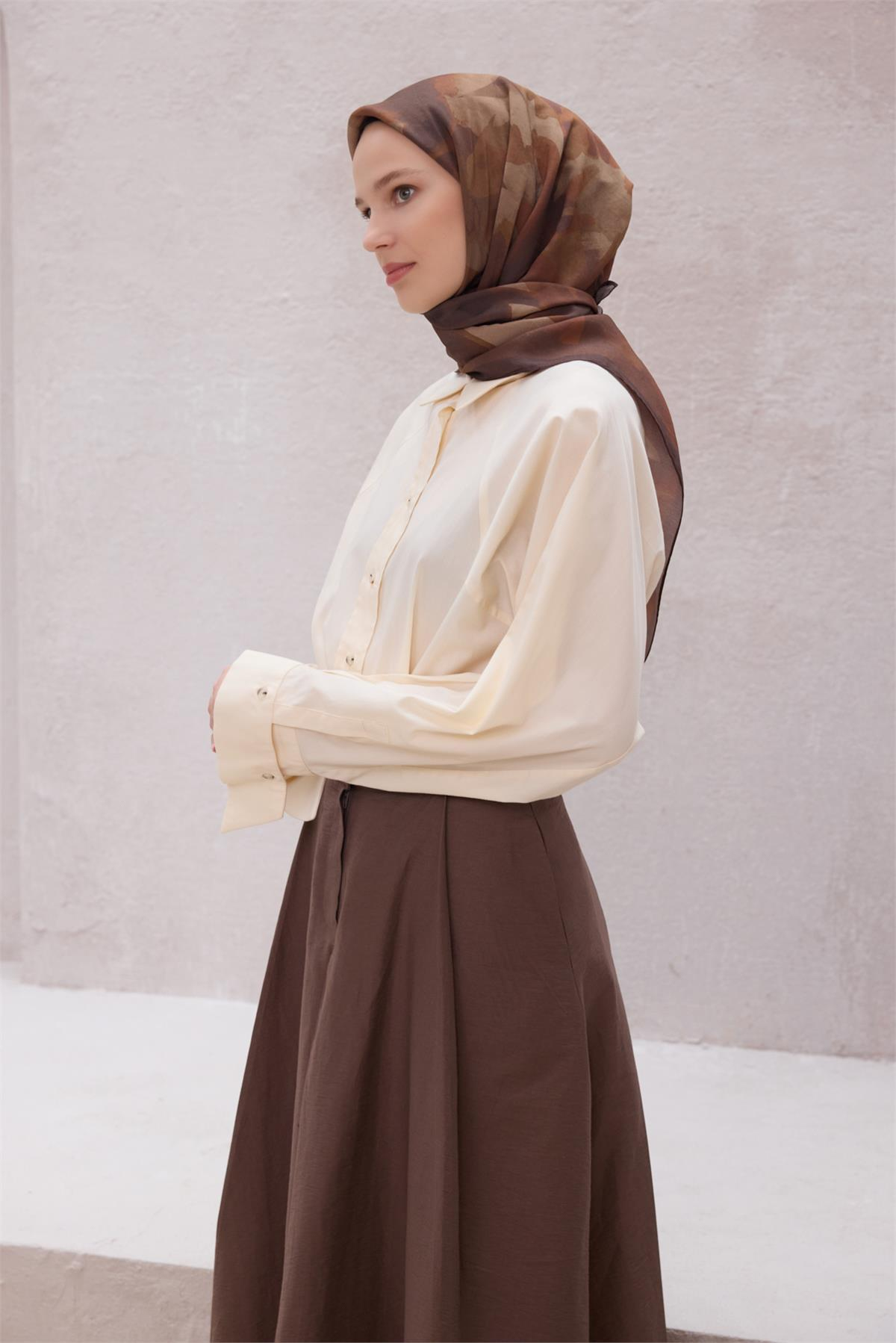 Dengeli tutuşu ve pürüzsüz dokusuyla bu eşarp, kaliteli kumaş ve özenli doku uyumunu zarifçe yansıtır. Eşarp tercih edenler için formunu koruyan dengeli bir alternatif oluşturur. Kumaş yapısını korumak için yoğun sürtünmeden kaçınılmalıdır. Seyahat ve hafta sonu planlarında hafifliğiyle öne çıkar. Özel günlerde sevdiklerinize sade bir şıklık sunar.