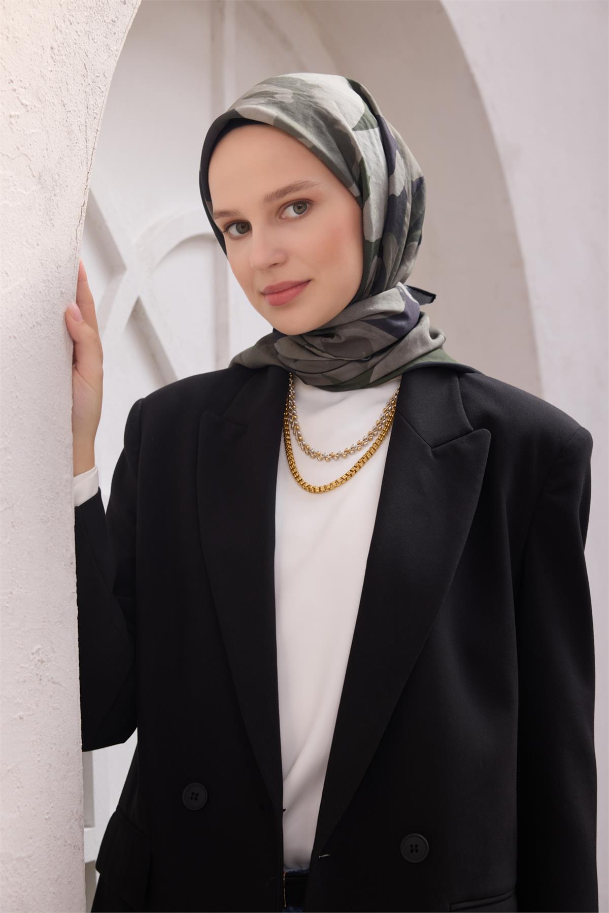 Naif desen detayları modele karakter ve akış kazandırır. Yoğun tempo günlerinde eşarp, görünümü sakin ve düzenli tutar. Nötr tonlar gamı, ofis ve şehir stiline kolayca entegre olur. Stilinizi zahmetsizce tamamlayan zamansız bir parçadır. Kumaş yapısını korumak için yoğun sürtünmeden kaçınılmalıdır.