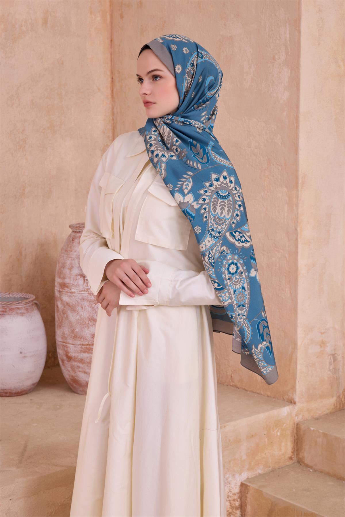 Modern turkuaz rengi zamansız ve dengeli bir görünüm sunar. Özenli etnik desen işlemesi görsel bütünlüğe ritim katar. Gün boyu konfor arayanlar için hafif ve düzenli bir duruş sergiler. Konfor ve zarafeti aynı potada toplayan bu şal, kaliteli kumaş ve özenli doku birlikteliğiyle öne çıkar. Zarif bir hediye alternatifi olarak da düşünülebilir. Her mevsimde değerlendirilebilecek dengeli ve şık bir çözümdür.