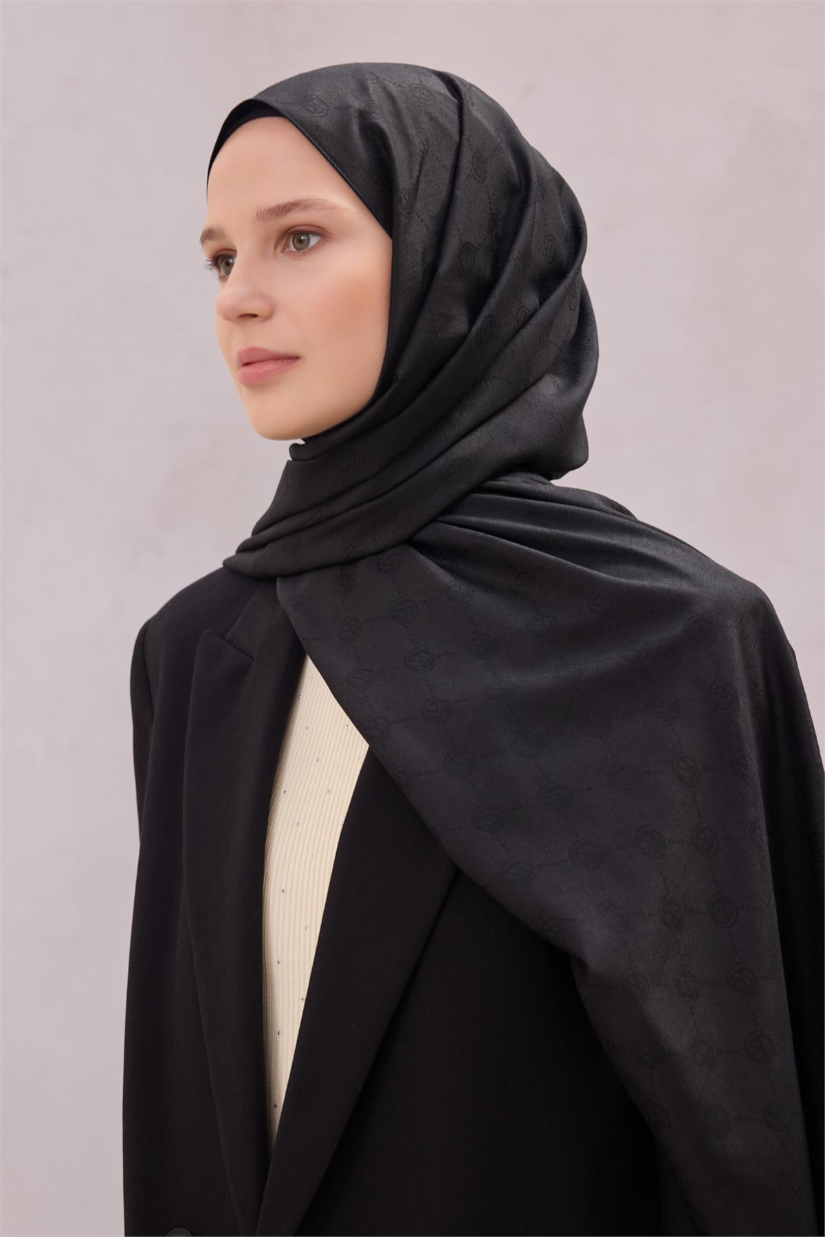 Siyah tonları farklı kombinlerle kusursuz bir uyum yakalar. Kapsül dolaplara uyumuyla uzun süre değerini koruyan bir seçimdir. Dengeli tutuşu ve pürüzsüz dokusuyla bu şal, kaliteli kumaş ve özenli doku uyumunu zarifçe yansıtır. Günlük şehir stilinden özel davetlere uzanan kombinlerde şal olarak rahatça değerlendirilebilir. Kumaş yapısını korumak için yoğun sürtünmeden kaçınılmalıdır. Imza desen dokunuşu parçanın seçkin duruşunu destekler.