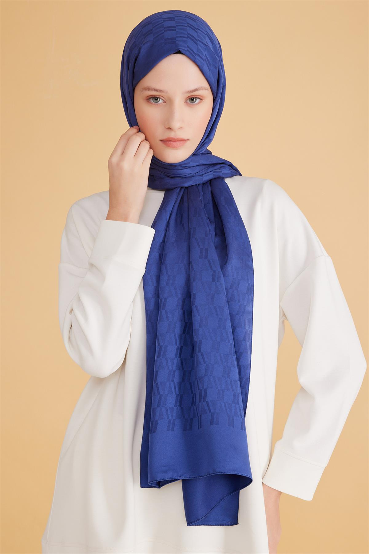 Gece mavisi tonları, minimal ve klasik çizgileri rahatça tamamlar. Günlük şehir stilinden özel davetlere uzanan kombinlerde şal olarak rahatça değerlendirilebilir. Uzun ömürlü kullanım için hassas bakım önerilir. Geometrik vurgusu, sade çizgiye incelikli bir dinamizm ekler. Kapsül dolaplara uyumuyla uzun süre değerini koruyan bir seçimdir. Görünümünüze sakin bir zarafet ekleyen tamamlayıcı bir dokunuştur.