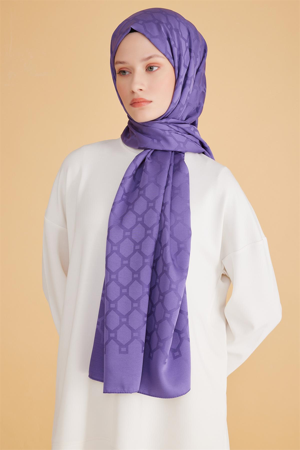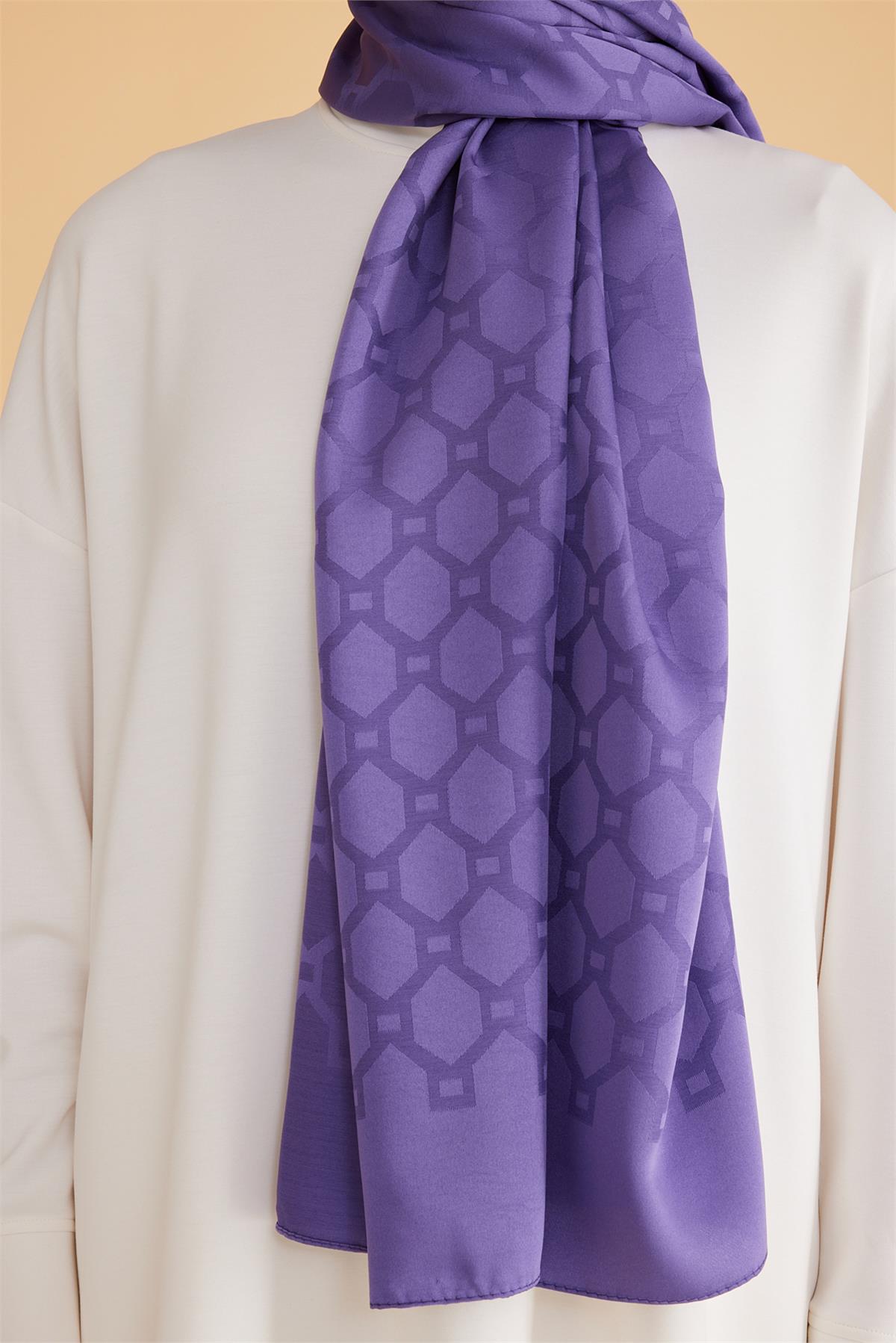 Fresh serisinden bu şal, kaliteli kumaş ile özenli doku dokuyu dengeli bir şıklıkta buluşturur. Geometrik detayları modele karakter ve akış kazandırır. Şal tercih edenler için formunu koruyan dengeli bir alternatif oluşturur. Her mevsimde değerlendirilebilecek dengeli ve şık bir çözümdür. Serin akşamlarda ince katmanlar üzerinde zarif bir tamamlayıcıdır. Mor gamı, ofis ve şehir stiline kolayca entegre olur.