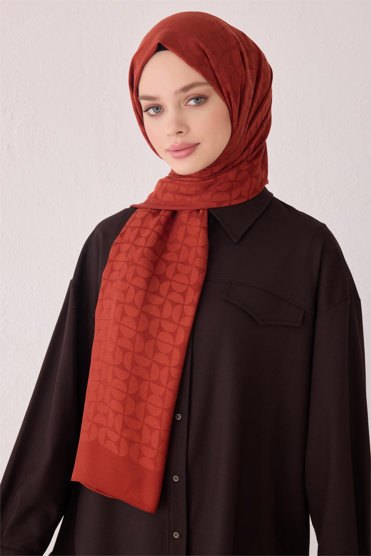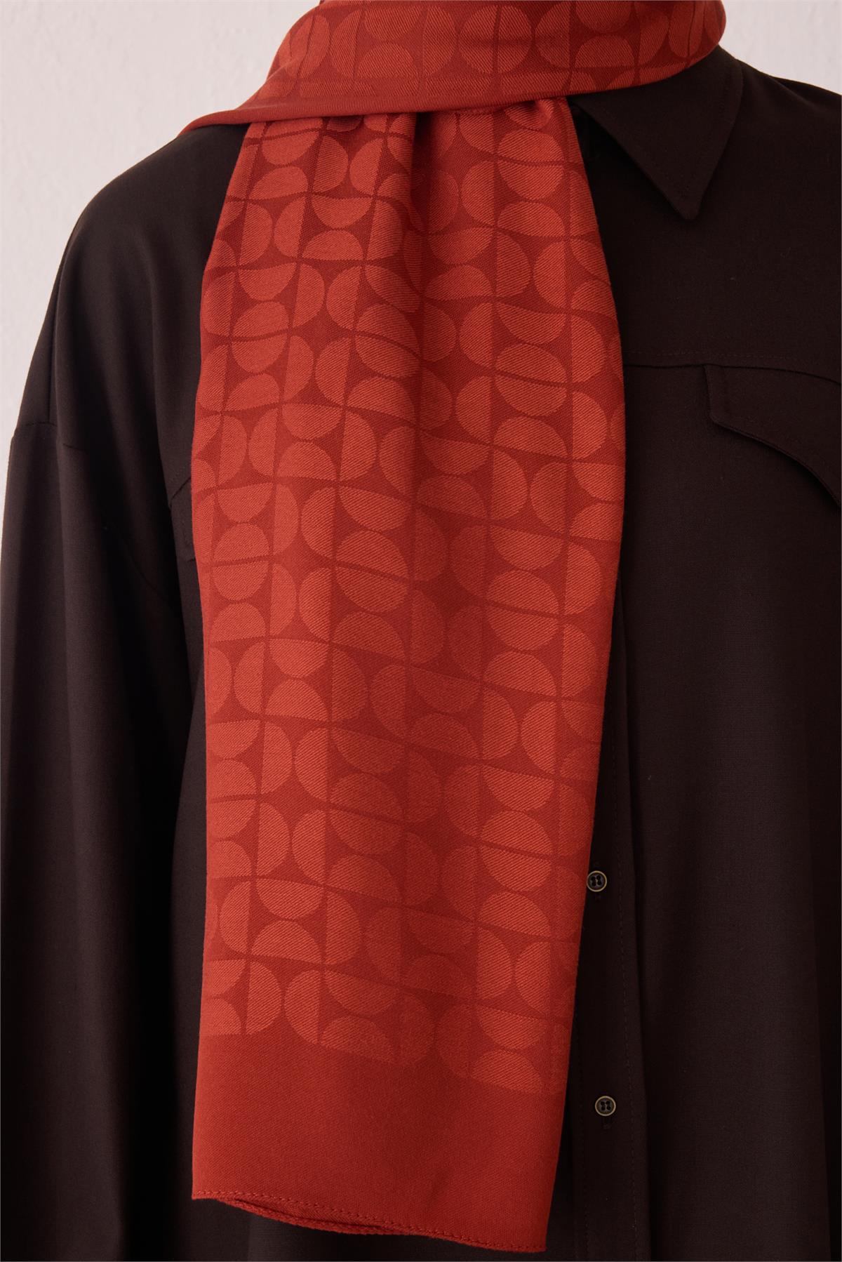 Şal tercih edenler için formunu koruyan dengeli bir alternatif oluşturur. Her mevsimde değerlendirilebilecek dengeli ve şık bir çözümdür. Geometrik detayları modele karakter ve akış kazandırır. Uzun ömürlü kullanım için hassas bakım önerilir. Kapsül dolaplara uyumuyla uzun süre değerini koruyan bir seçimdir. Kiremit paleti günlük stile sakin ve güçlü bir etki katar.