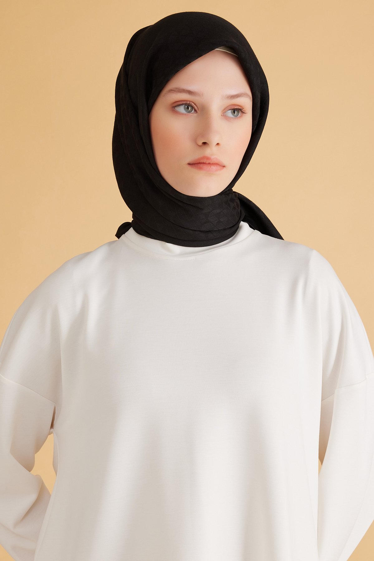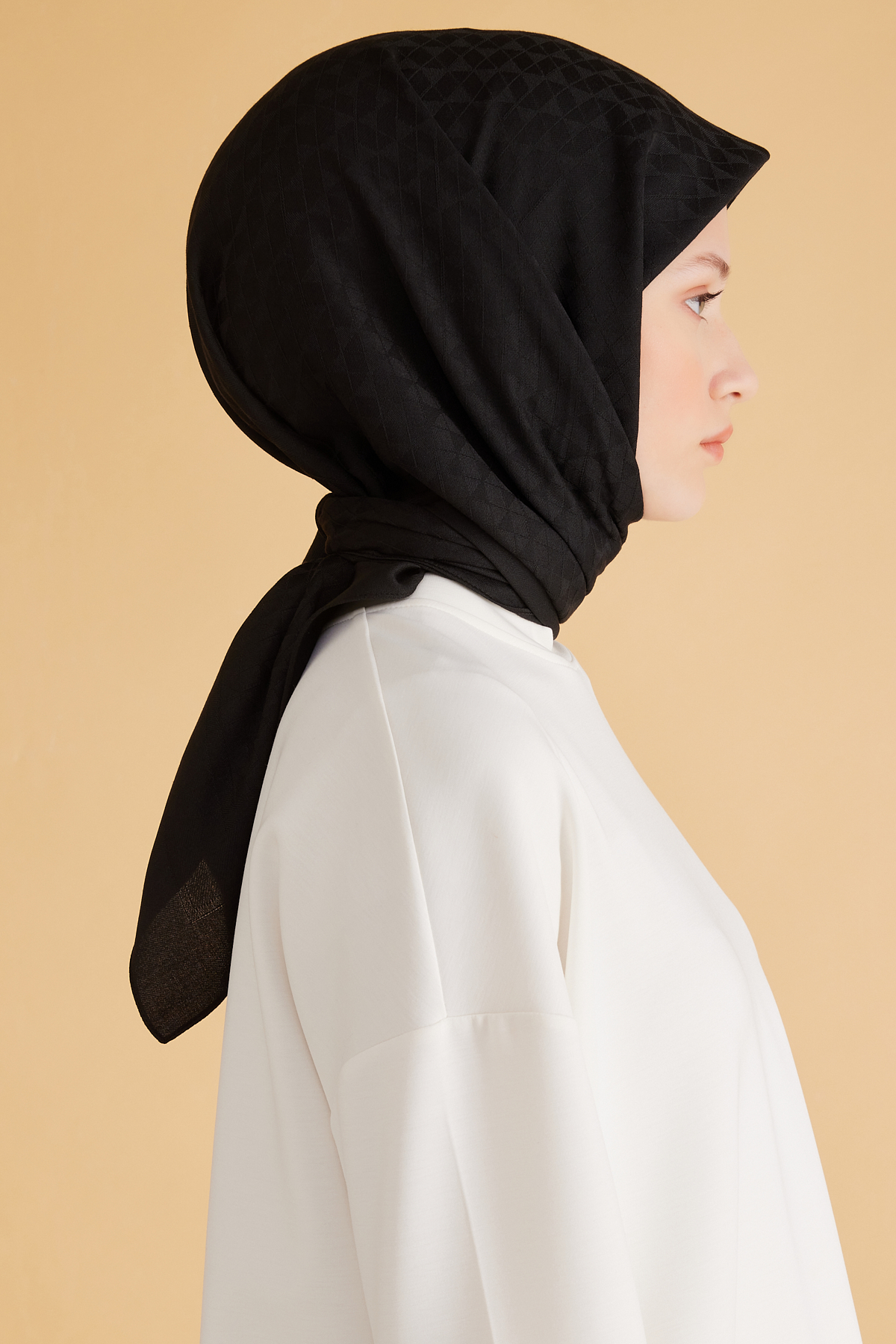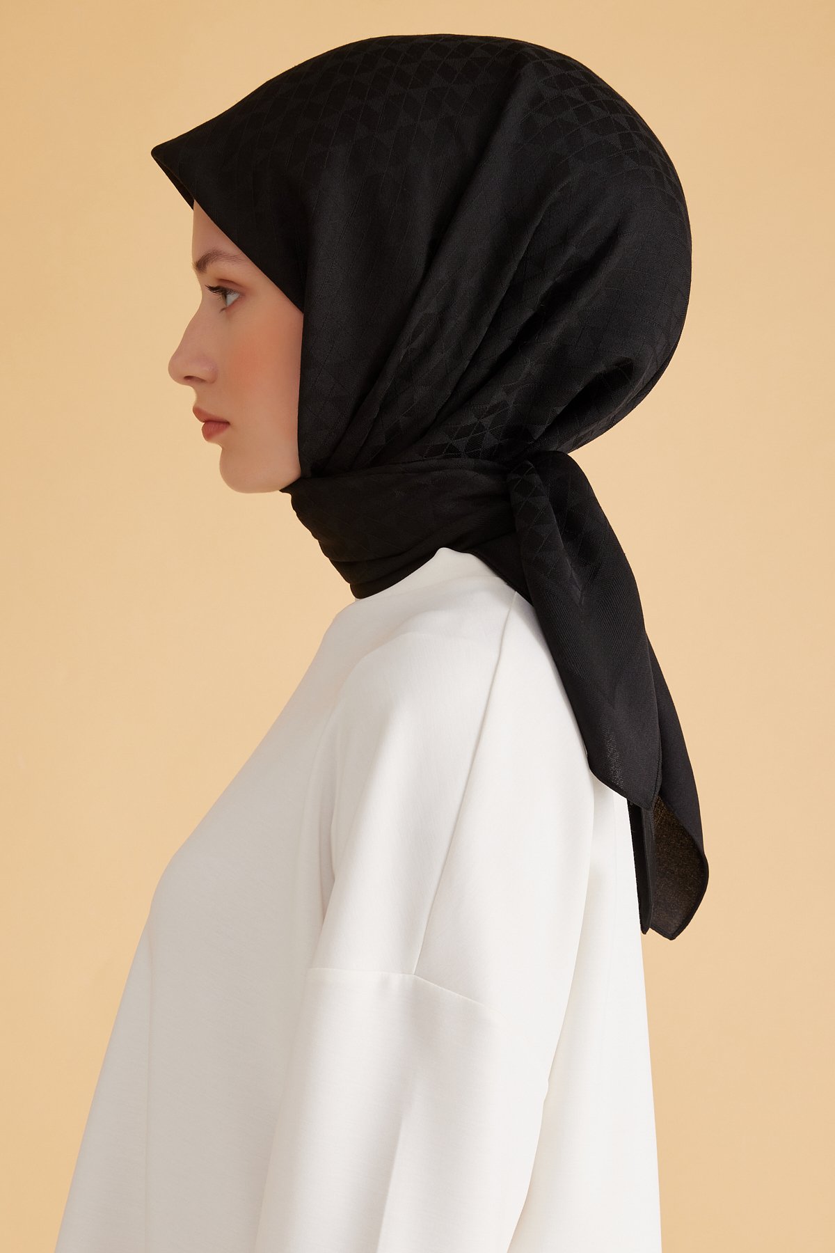 Eşarp tercih edenler için formunu koruyan dengeli bir alternatif oluşturur. Seyahat ve hafta sonu planlarında hafifliğiyle öne çıkar. Düşük ısı ve özenli saklama ile ilk günkü formunu korur. Belli serisinden bu eşarp, geometrik desen ile özenli doku dokuyu dengeli bir şıklıkta buluşturur. Özel günlerde sevdiklerinize sade bir şıklık sunar.