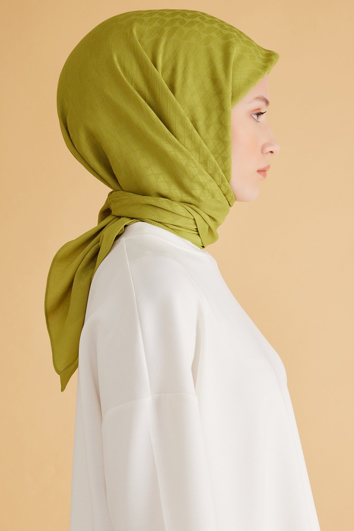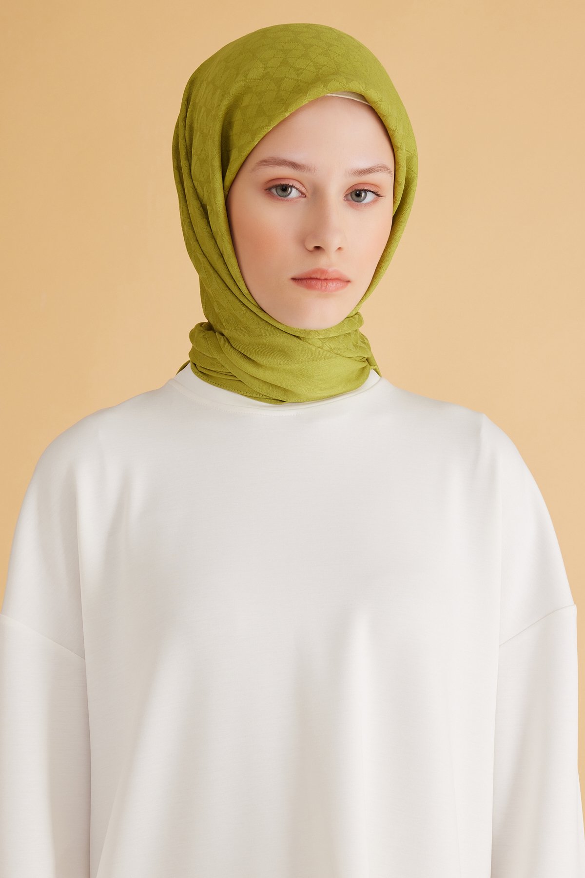 Günlük şehir stilinden özel davetlere uzanan kombinlerde eşarp olarak rahatça değerlendirilebilir. Yağ yeşili tonları, minimal ve klasik çizgileri rahatça tamamlar. Dolabınızda uzun süre keyifle kullanacağınız güvenilir bir tercihtir. Geometrik desen detayları modele karakter ve akış kazandırır. Nazik yıkama ve düz zemin kurutma tavsiye edilir.