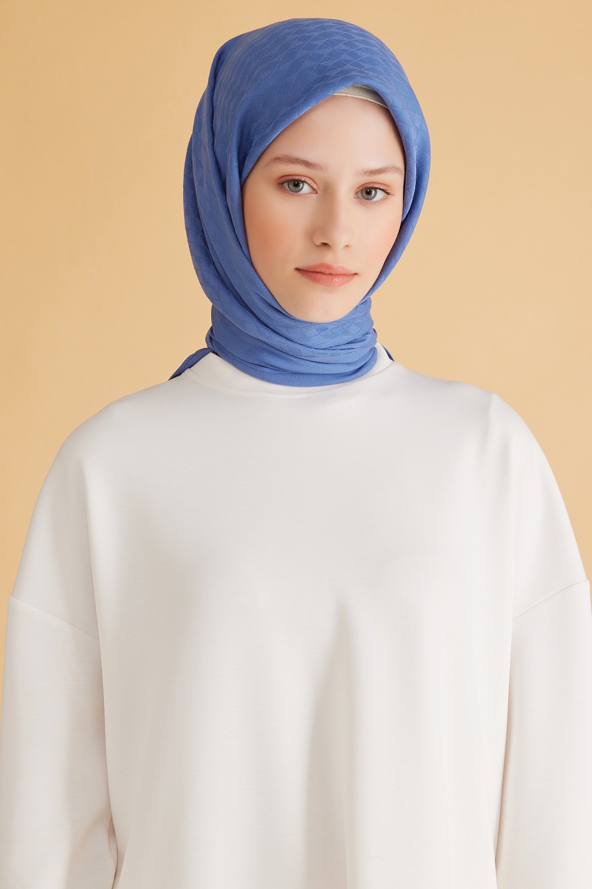 Belli serisinden bu eşarp, geometrik desen ile özenli doku dokuyu dengeli bir şıklıkta buluşturur. Özel günlerde sevdiklerinize sade bir şıklık sunar. Günlük şehir stilinden özel davetlere uzanan kombinlerde eşarp olarak rahatça değerlendirilebilir. Her mevsimde değerlendirilebilecek dengeli ve şık bir çözümdür. Kumaş yapısını korumak için yoğun sürtünmeden kaçınılmalıdır.