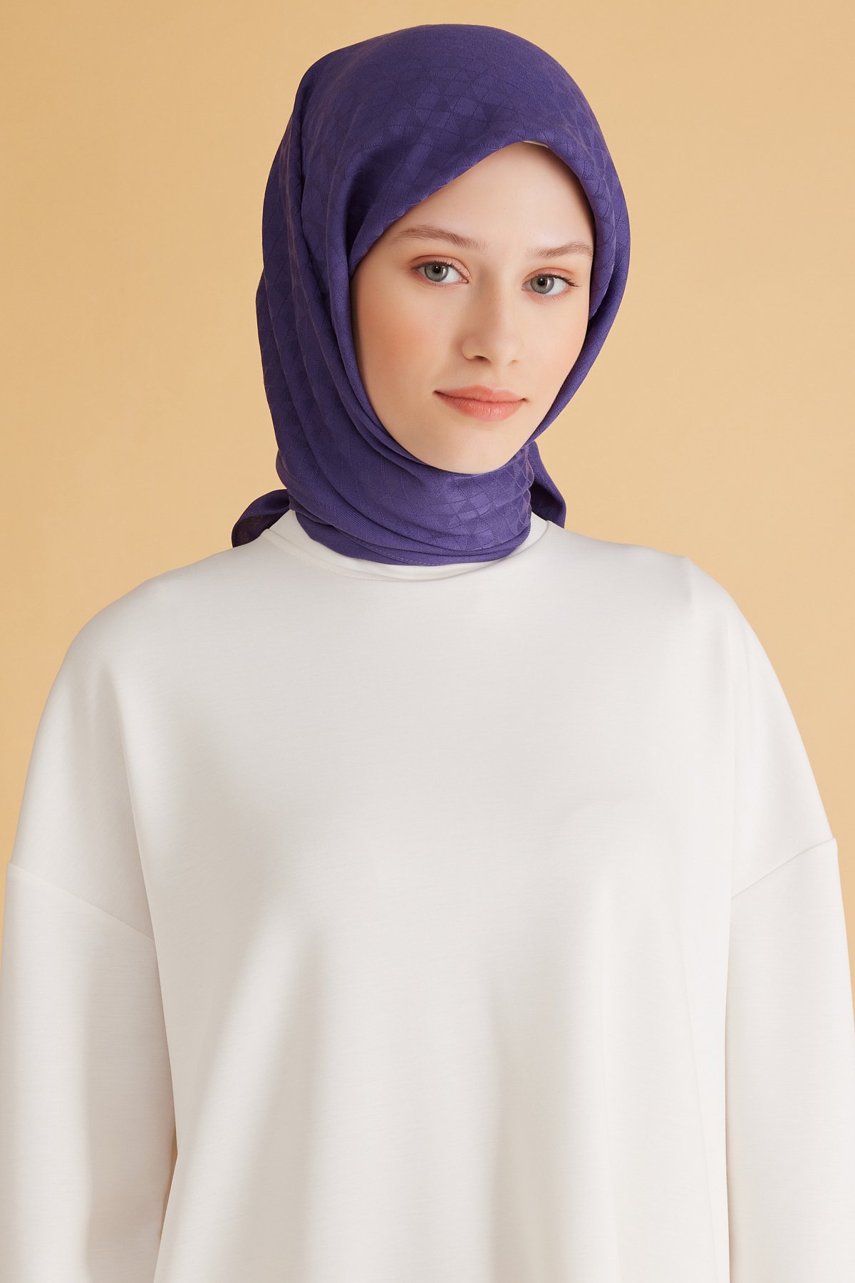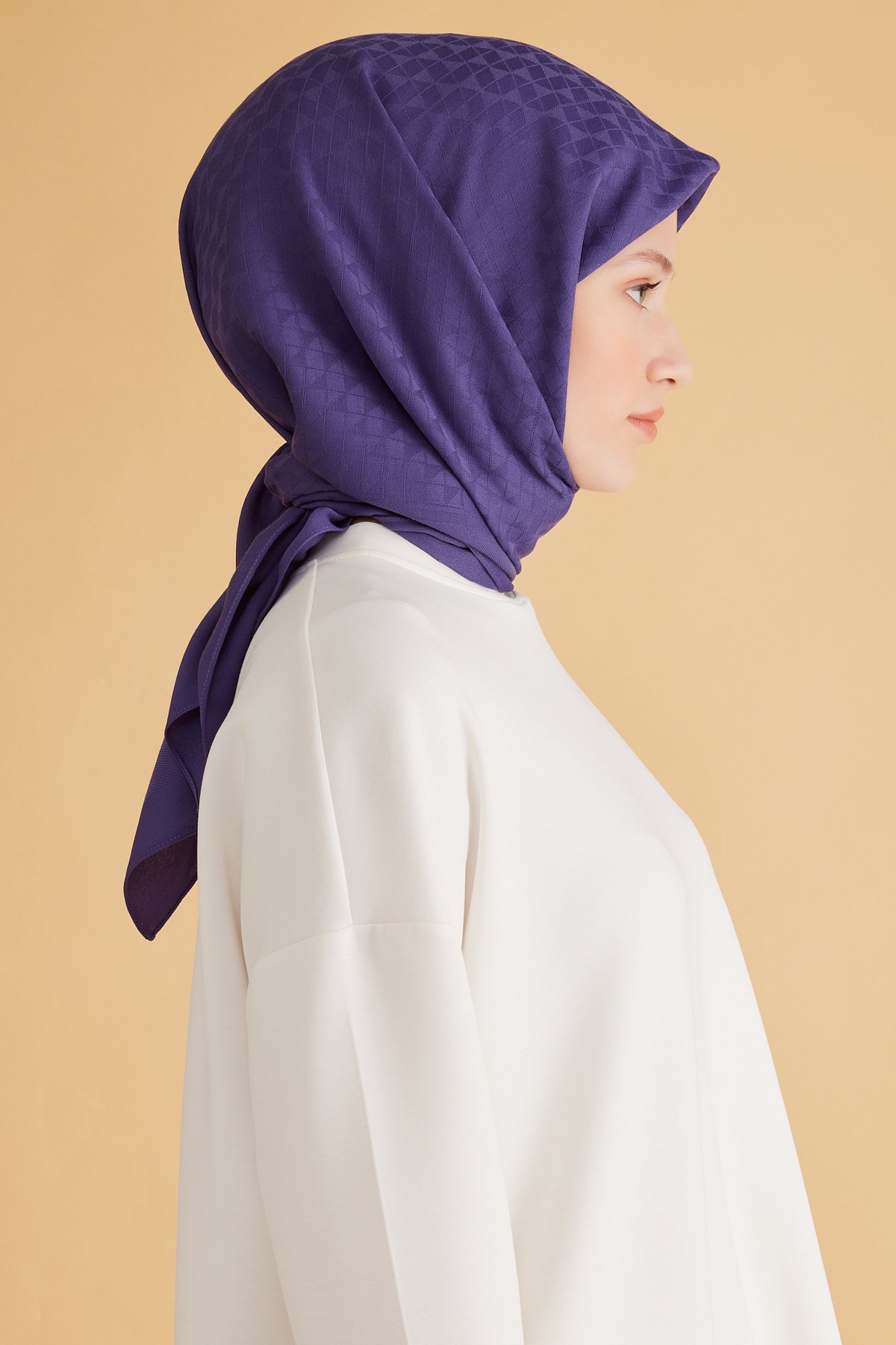 Günlük şehir stilinden özel davetlere uzanan kombinlerde eşarp olarak rahatça değerlendirilebilir. Nazik yıkama ve düz zemin kurutma tavsiye edilir. Modern mor rengi zamansız ve dengeli bir görünüm sunar. Geometrik desen dokunuşu parçanın seçkin duruşunu destekler. Gün boyu konfor arayanlar için hafif ve düzenli bir duruş sergiler. Özel günlerde sevdiklerinize sade bir şıklık sunar.