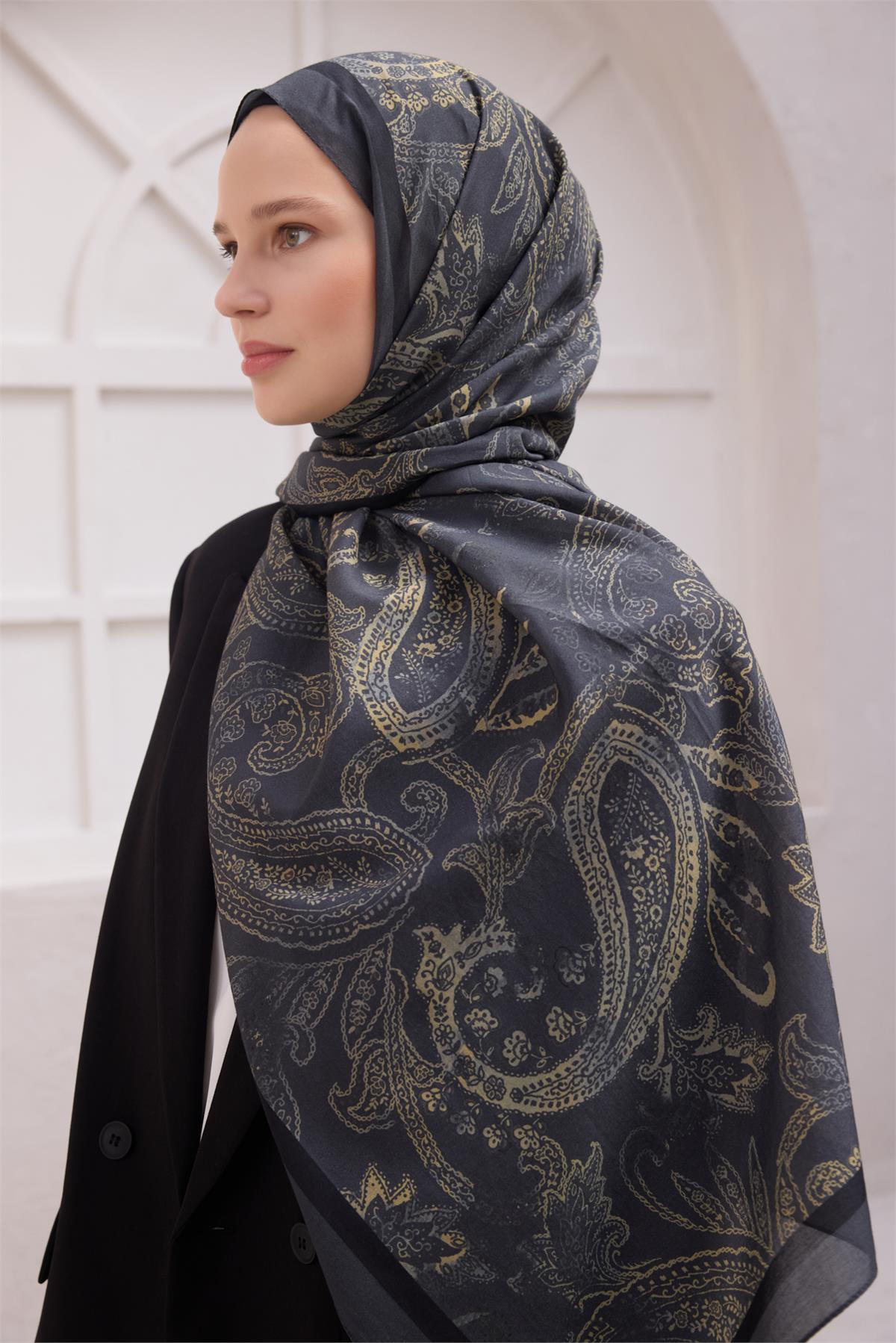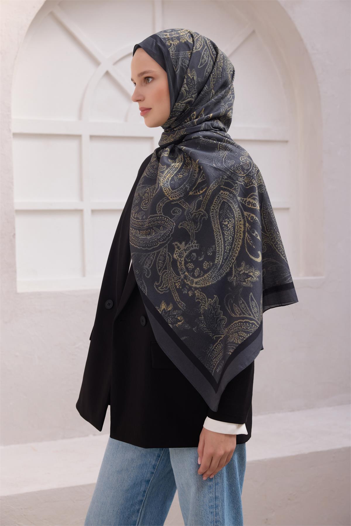 Uzun ömürlü kullanım için hassas bakım önerilir. Görünümünüze sakin bir zarafet ekleyen tamamlayıcı bir dokunuştur. Naif desen dokunuşu parçanın seçkin duruşunu destekler. Günlük şehir stilinden özel davetlere uzanan kombinlerde şal olarak rahatça değerlendirilebilir. Nötr tonlar paleti günlük stile sakin ve güçlü bir etki katar. Özel günlerde sevdiklerinize sade bir şıklık sunar.