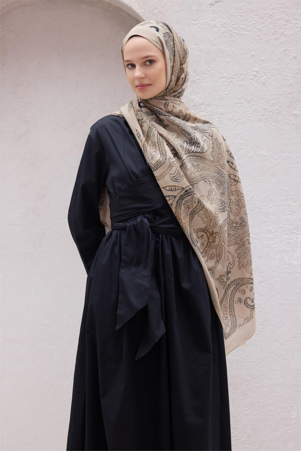 Seyahat ve hafta sonu planlarında hafifliğiyle öne çıkar. Özenli naif desen işlemesi görsel bütünlüğe ritim katar. Uzun ömürlü kullanım için hassas bakım önerilir. Kaliteli kumaş yapısı, özenli doku dokuyla birleşerek bu şalna modern bir ifade kazandırır. Görünümünüze sakin bir zarafet ekleyen tamamlayıcı bir dokunuştur.