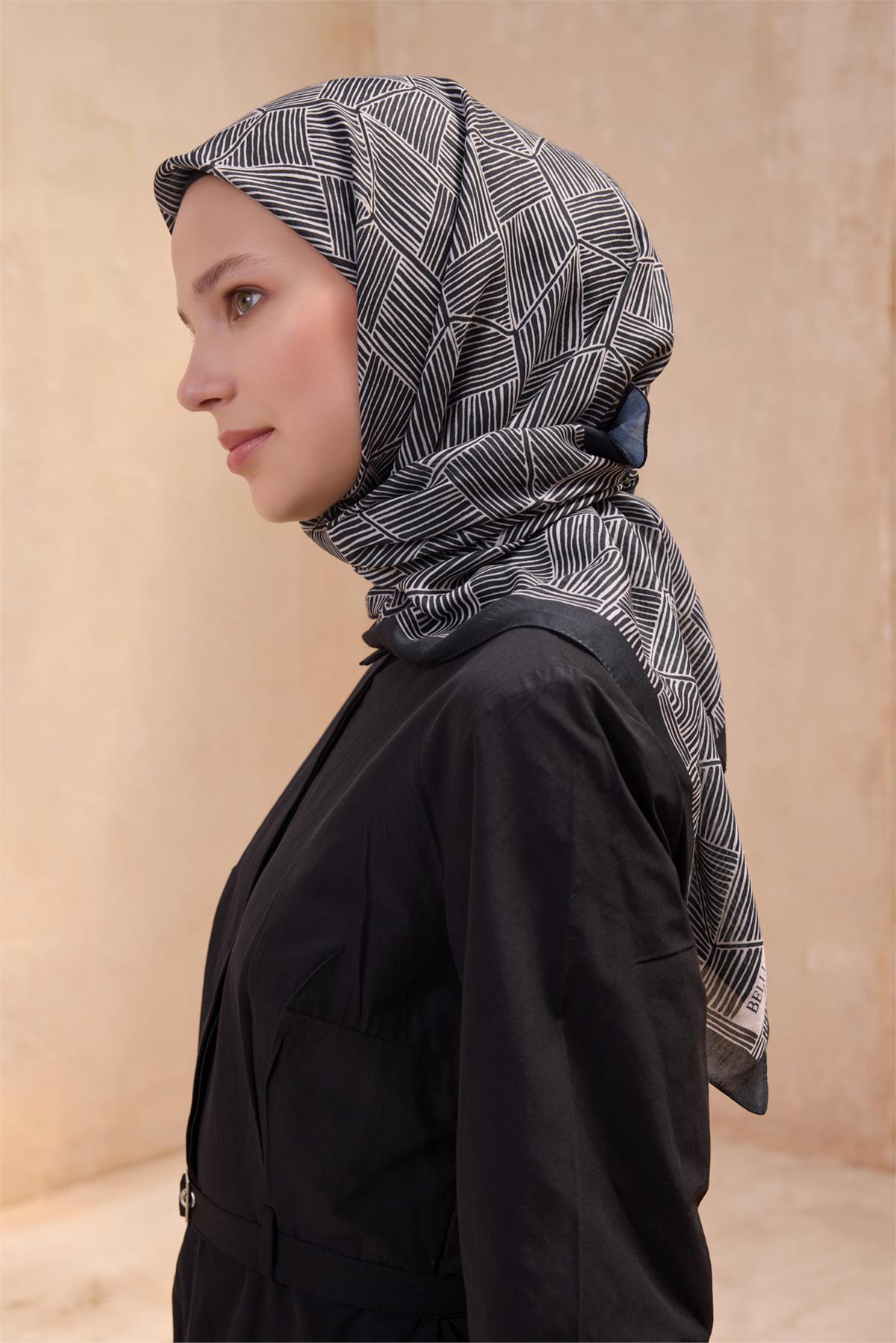 Yoğun tempo günlerinde eşarp, görünümü sakin ve düzenli tutar. Özel günlerde sevdiklerinize sade bir şıklık sunar. Dengeli tutuşu ve pürüzsüz dokusuyla bu eşarp, geometrik desen ve özenli doku uyumunu zarifçe yansıtır. Geometrik desen yaklaşımı tasarımın özgün kimliğini öne çıkarır. Düşük ısı ve özenli saklama ile ilk günkü formunu korur.