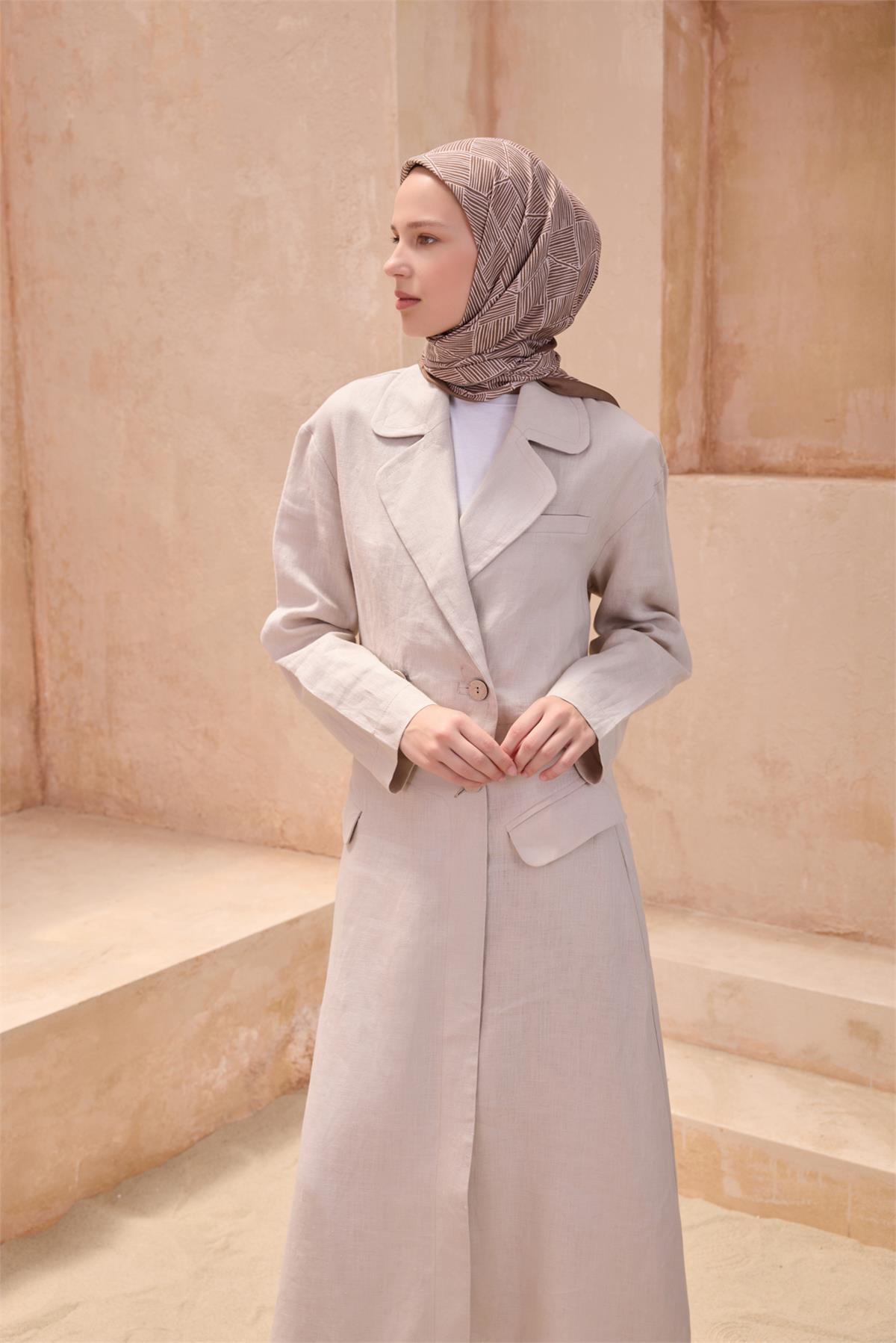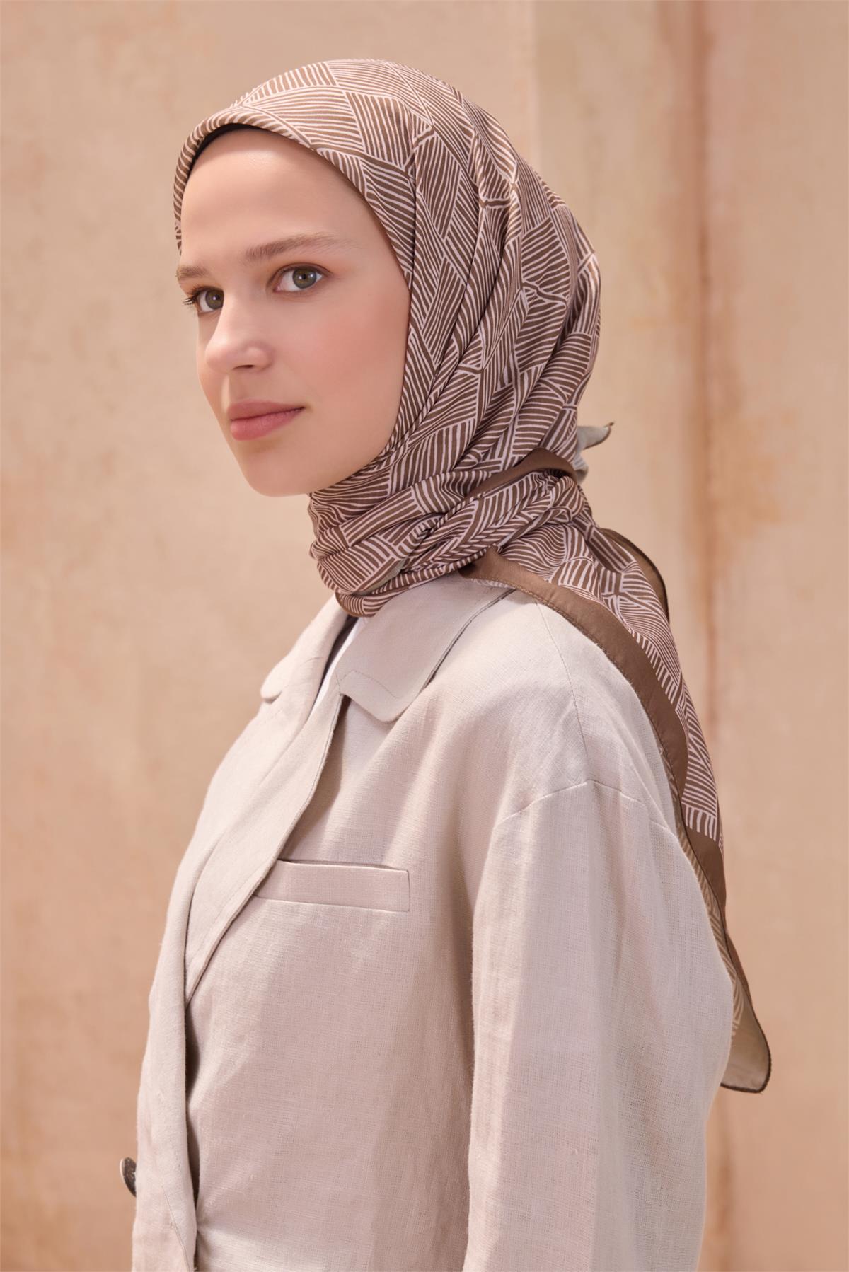 Minimal ve klasik çizgileri sevenler için eşarp, ölçülü bir şıklık sunar. Serin akşamlarda ince katmanlar üzerinde zarif bir tamamlayıcıdır. Uzun ömürlü kullanım için hassas bakım önerilir. Geometrik desen dokunuşu parçanın seçkin duruşunu destekler. Zarif bir hediye alternatifi olarak da düşünülebilir. Görünümünüze sakin bir zarafet ekleyen tamamlayıcı bir dokunuştur.