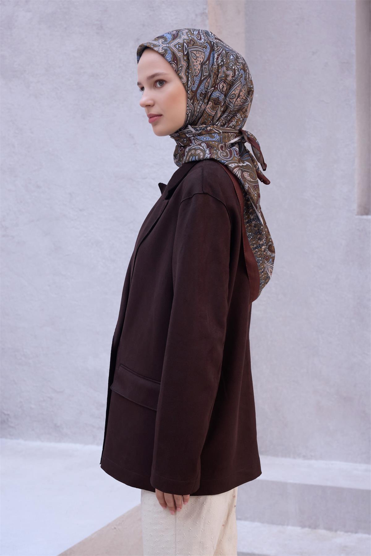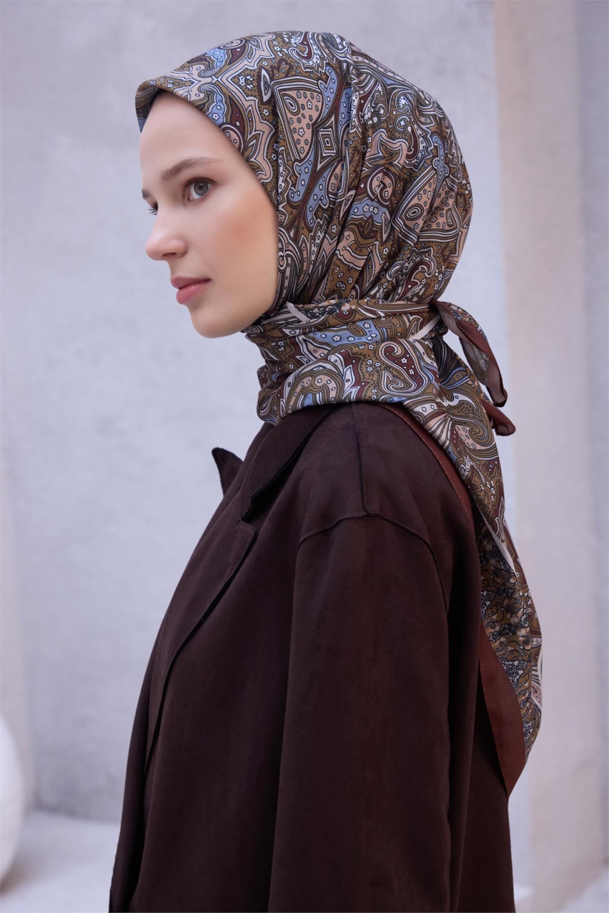 Yoğun tempo günlerinde eşarp, görünümü sakin ve düzenli tutar. Kumaş yapısını korumak için yoğun sürtünmeden kaçınılmalıdır. Gün boyu konfor arayanlar için hafif ve düzenli bir duruş sergiler. Kapsül dolaplara uyumuyla uzun süre değerini koruyan bir seçimdir. Her mevsimde değerlendirilebilecek dengeli ve şık bir çözümdür. Taba tonları farklı kombinlerle kusursuz bir uyum yakalar.