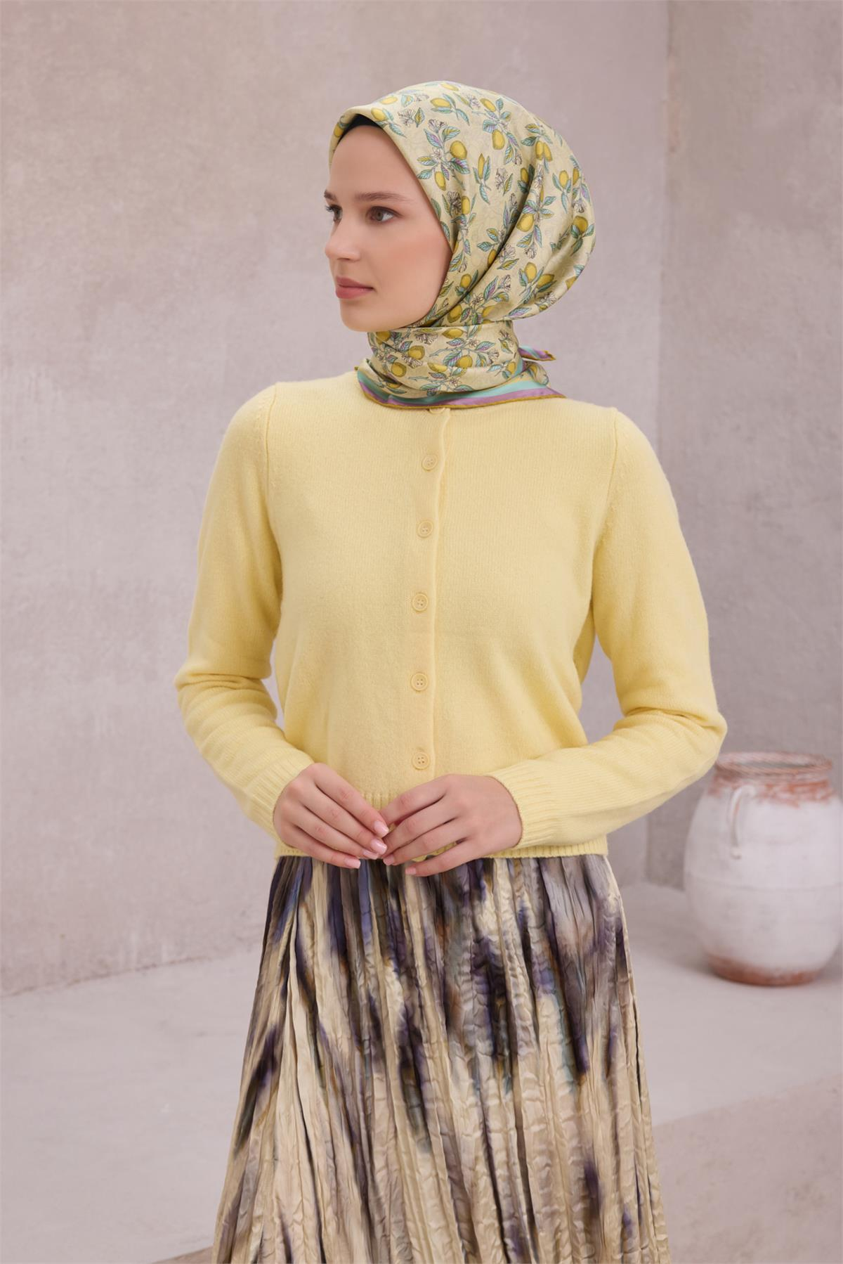 Hafif ve nefes alabilen yapısıyla %100 saf i̇pek eşarp, sari rengin modern havasını taşır. Feminen ve zarif bir görünüm arayanlar için kusursuz bir seçimdir. Yumuşak dokusuyla gün boyu konfor sunar.
