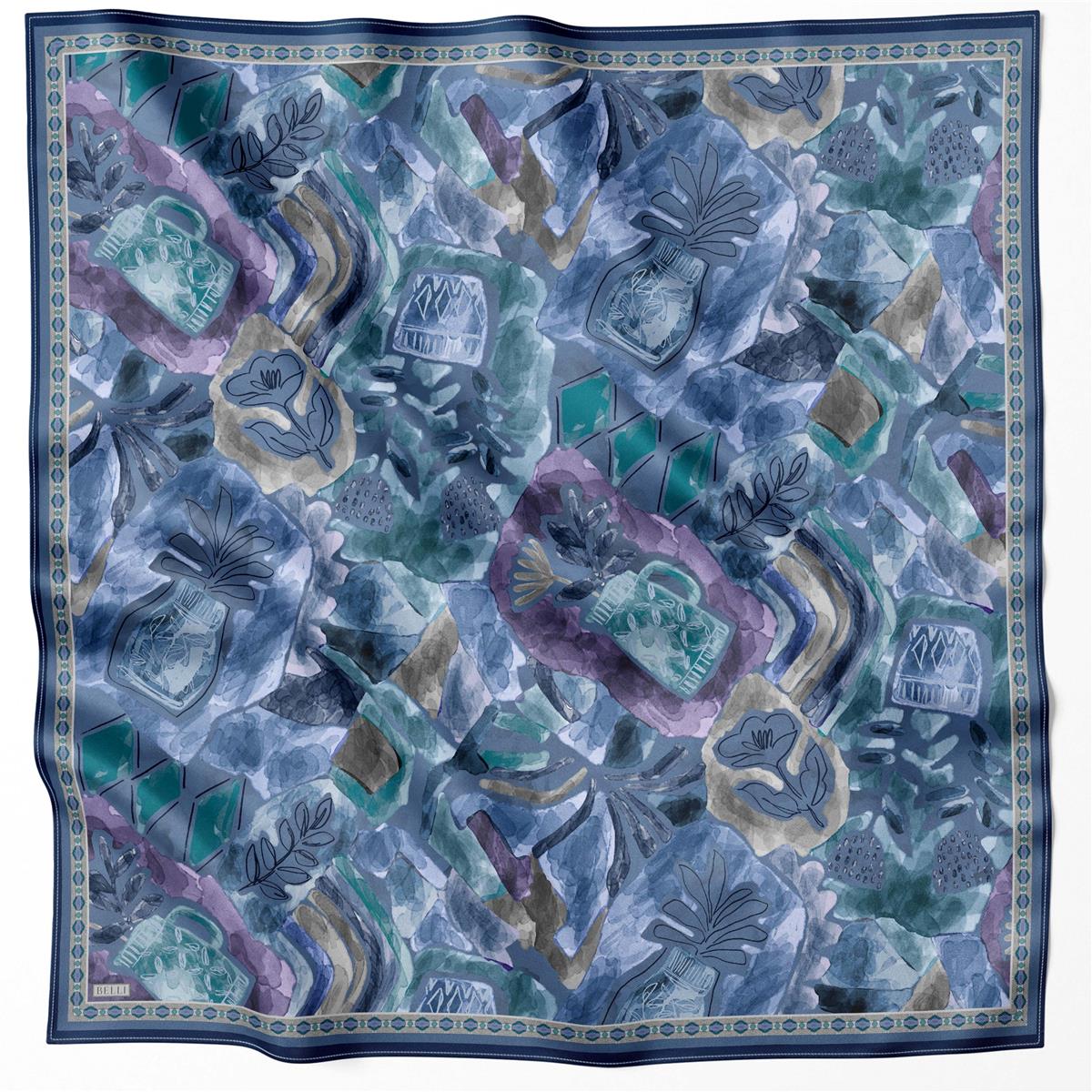 Modern çizgileriyle obje desen deseni, %100 saf i̇pek eşarpya mavi̇ tonlarında zarif bir duruş kazandırıyor. Klasik ve modern çizgileri harmanlayarak özgün bir tarz sunar. Zamansız çizgisiyle yıllarca keyifle kullanılabilir.