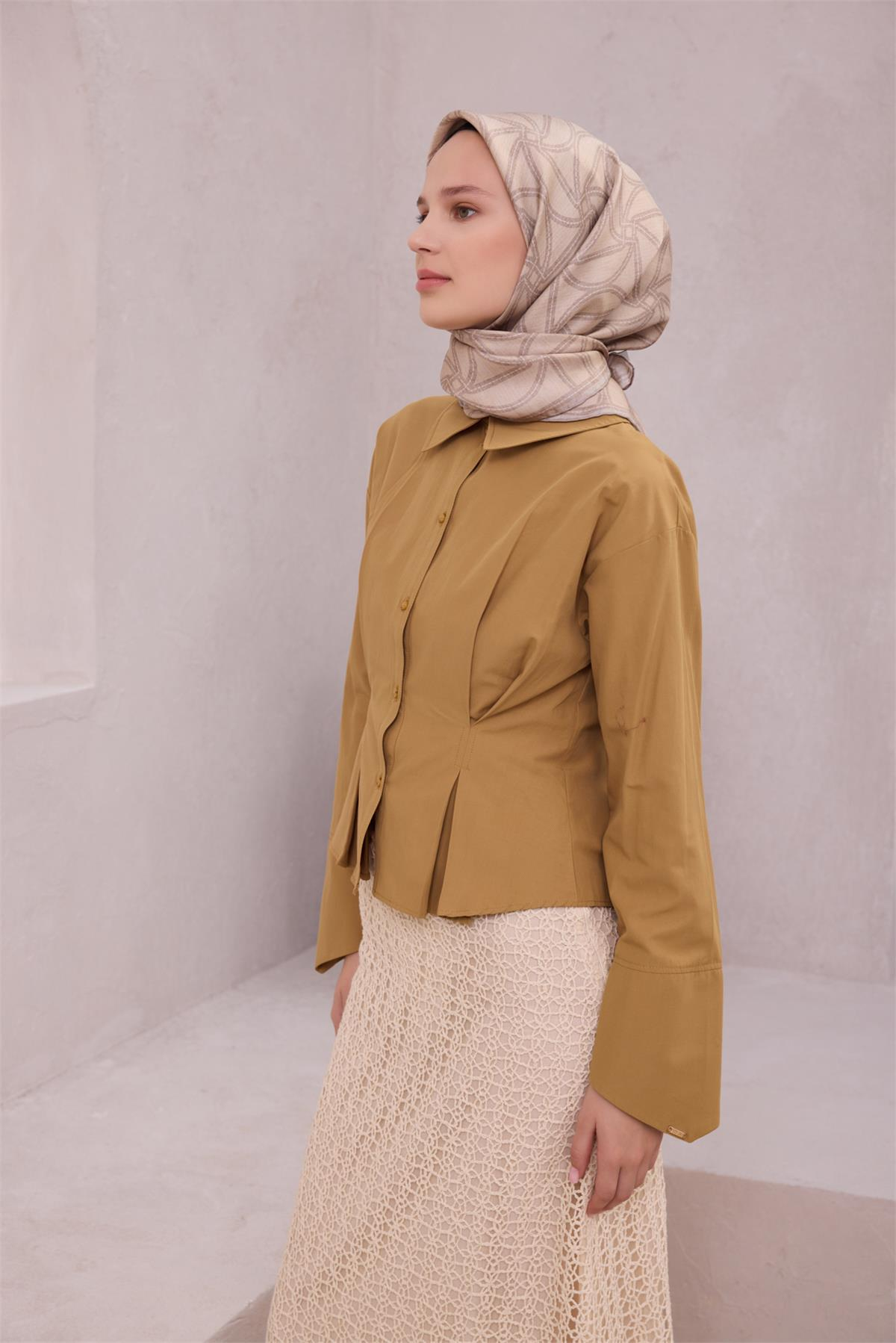 Modern çizgileriyle geometi̇k desen deseni, %100 saf i̇pek eşarpya bej tonlarında zarif bir duruş kazandırıyor. Kombinlerinize sofistike bir dokunuş katarken doğal parlaklığıyla öne çıkar. Yumuşak dokusuyla gün boyu konfor sunar.