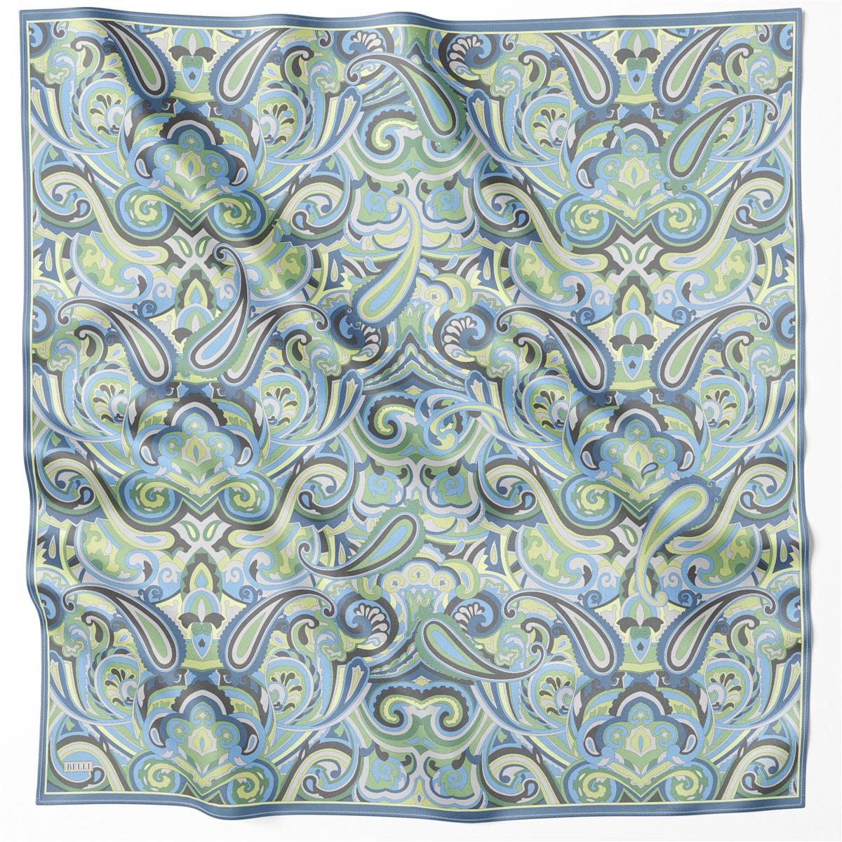 Modern çizgileriyle etni̇k desen deseni, %100 saf i̇pek eşarpya yeşi̇l mavi̇ tonlarında zarif bir duruş kazandırıyor. Feminen ve zarif bir görünüm arayanlar için kusursuz bir seçimdir. Yumuşak dokusuyla gün boyu konfor sunar.